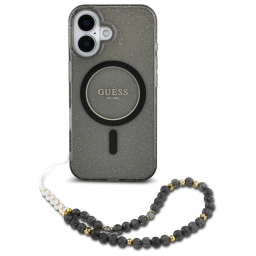 Guess IML Glitter With Pearl Strap MagSafe case for iPhone 16 - black