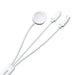Kabel z trzema końcówkami — magnetyczną do zegarka, USB-C i Lightning — rozłożonymi wachlarzowo