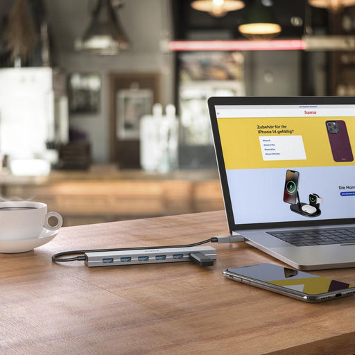 HAMA 7-port hub, USB 3.2 Gen 1, 5 Gbit/s, USB-C adapter with power supply
