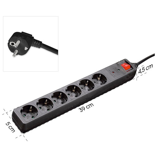 Hama 6-socket surge protector strip 1.4m with switches - black