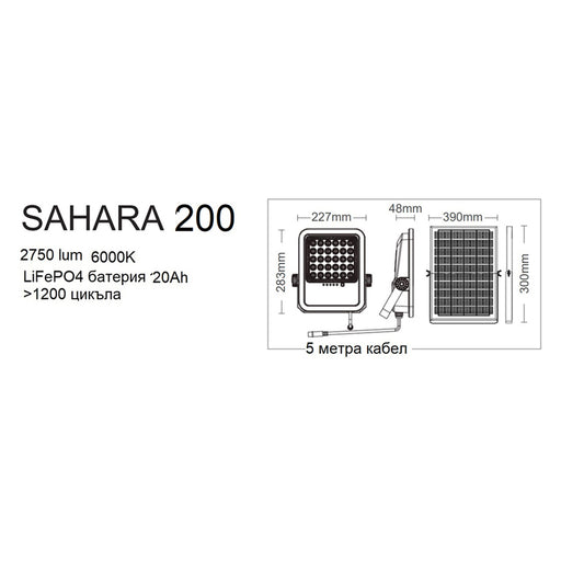 SOLAR LED SPOTLIGHT 6000K 3.2V 12AH WITH 5M CABLE VITO SAHARA