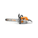 Mid-range petrol chainsaw with versatile applications. Economical, clean and low-vibration. Compared to conventional STIHL two-stroke engines with the same power but without 2-MIX technology, its fuel consumption is up to 20% lower and the level of harmful emissions in the exhaust gases is reduced by up to 50%. Suitable for growing young plants, thinning and harvesting round materials, use in construction and cutting firewood.