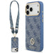 Guess 4G Strass Logo & Big Strap Metal Buttons MagSafe Case for iPhone 17 Pro Max - Blue