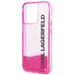 The case is distinguished by liquid, shimmering particles of pink glitter that change their arrangement depending on the angle of the case. In addition to its visual appeal, the classic transparent case in a pink shade is adorned with the famous designer's logo.