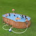 • The unique oval design and shape makes this pool more compact, therefore it requires less space to install and less water to fill.