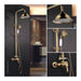The Rousseau Byron shower column stands out for its functional design and elegant antique bronze finish, adding a classic and sophisticated touch to any bathroom. Made of stainless steel with a durable coating, this column features a mechanical mixer tap with a Ø 40 mm ceramic cartridge that ensures smooth, long-lasting operation, providing precise control of water temperature and flow. Its telescopic support, adjustable between 0.85 and 1.18 meters, allows adaptation to different heights and needs. The set includes a round, adjustable main showerhead of Ø 205 mm with a swivel arm compatible with Ø 22 and 25 mm pipes, offering a comfortable, personalized shower experience. It also includes a handheld shower with a Ø 83 mm spray connected by a 1.5-meter double-locked hose, providing mobility and ease of use for targeted washing. The ceramic diverter enables smooth switching between the overhead shower and handheld without water loss. Its soft anti-limescale nozzles extend durability and ease cleaning by preventing mineral buildup. The finish combines yellow and brown tones with polycarbonate and steel components, adding robustness and style. This set offers technical features suitable for those seeking a versatile, durable, and aesthetically refined shower column, integrating comfort and functionality with quality standards. In short, the Rousseau Byron shower column is a practical, balanced solution for bathrooms requiring a complete, adaptable shower system.